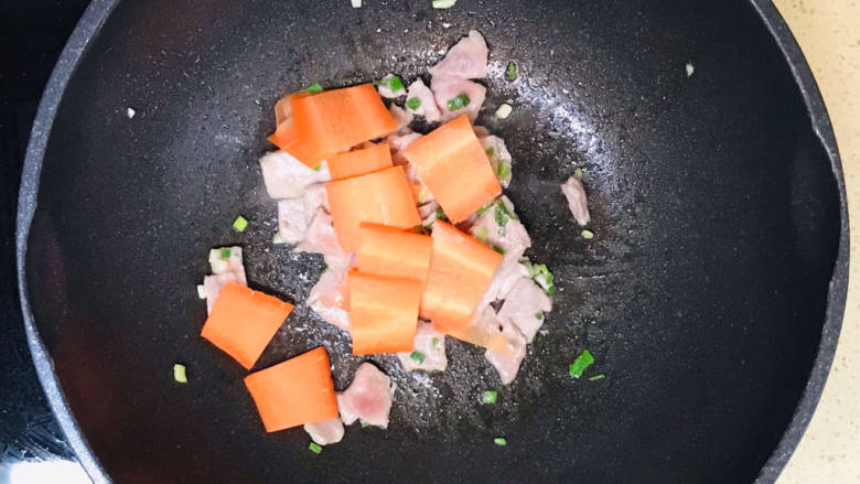 11. 翻炒至蔬菜恹恹,撒入盐调味