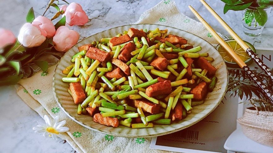 平时我比较喜欢豆制品,香干是我的常备食材,炒菜、拌食、煮汤都可以的,今天来一盘蒜苔炒香干,酱香味的拌饭吃。