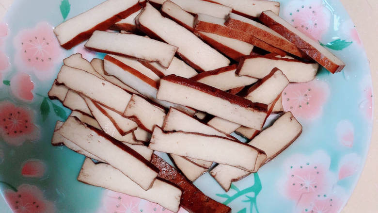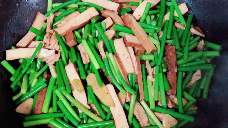 11. 香气扑鼻的蒜苔香干就上桌了。