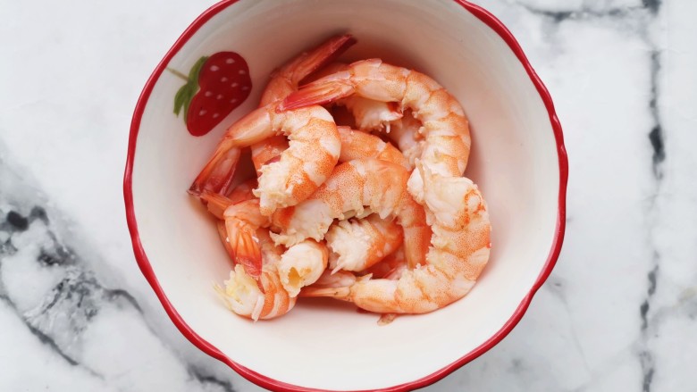 2. 锅中烧开水,鲜虾洗净放锅中煮熟捞出。