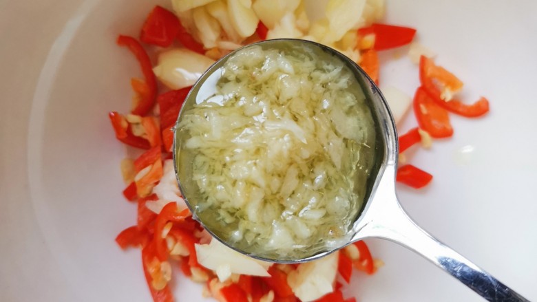 5. 碗中加适量小米辣蒜末,少许姜蓉酱