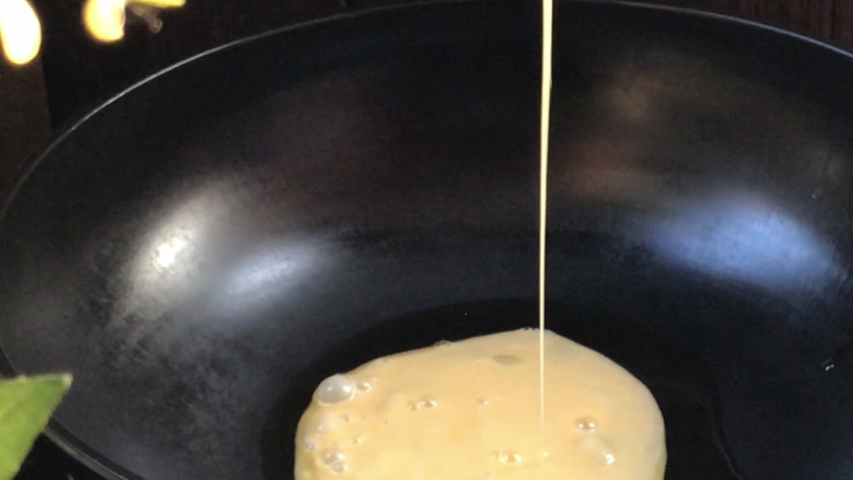 5. 起锅热油,倒入蛋液煎熟