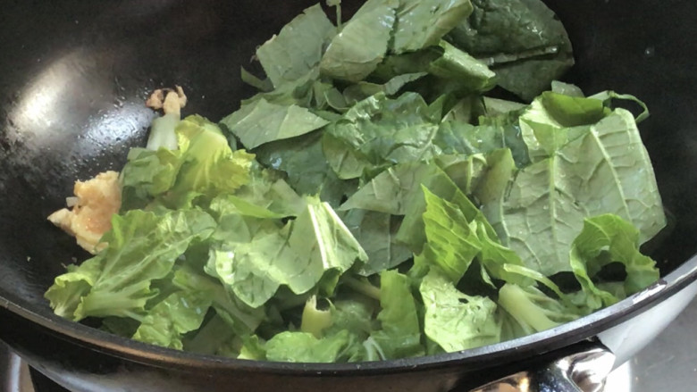 7. 加入青菜翻炒均匀至变色