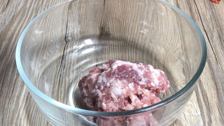 1. 猪肉洗净后剁成碎末,装入大点的容器中