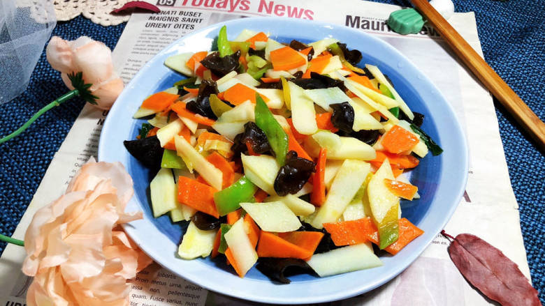 12. 这道菜做法简单,山药搭配木耳胡萝卜青椒,口感丰富,营养均衡,咸鲜味美,喜欢的小可爱一起来试试吧😄