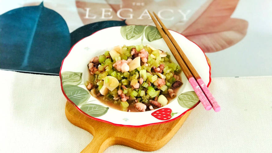 - 芹菜和墨鱼均切丁翻炒,更加入味鲜美。