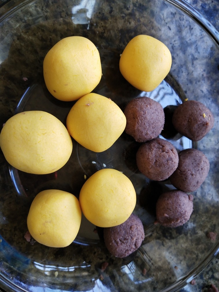 7. 把南瓜泥和豆沙馅弄成丸子,