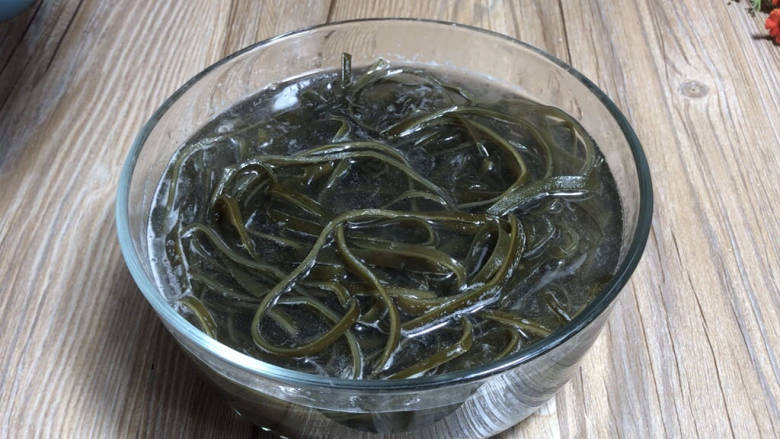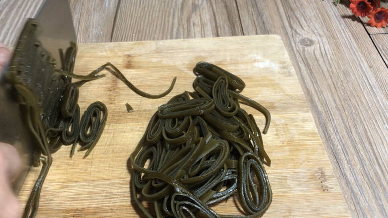1. 泡发好的海带洗净,切成长段卷成卷后,切成细丝