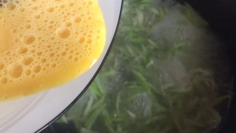 9. 倒入鸡蛋液,来几颗鸡精提鲜
