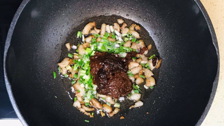 7. 加入葱花和豆瓣酱