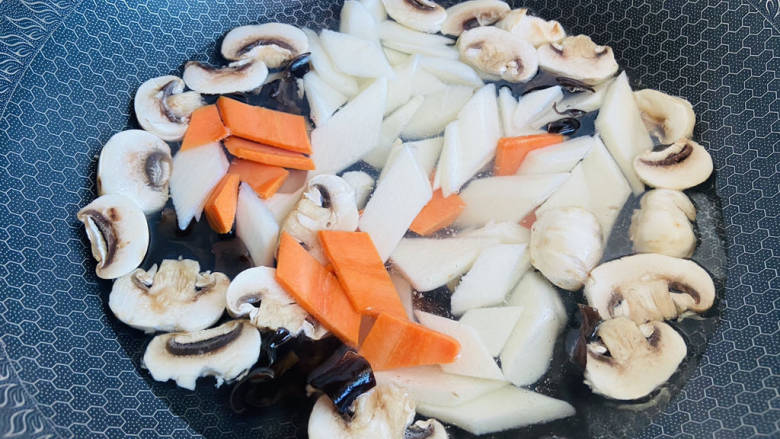 7. 锅中加入适量清水大火烧开,放入所有食材焯烫两分钟,并捞出控水