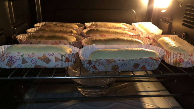 10. 放在烤网上进行二发,发酵的时候烤箱底部放一碗温水