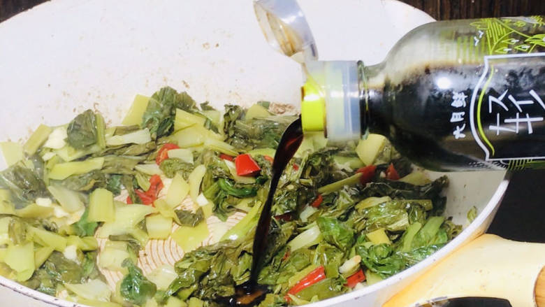 - 热锅后先不放油,直接放入冲菜炒香,这样出锅的冲菜更香更纯。
