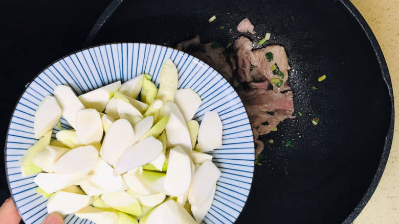 茭白可以泻火除烦,化浊降脂,特别适合三高人群,加肉一起炒制,增加蛋白质,美味营养。