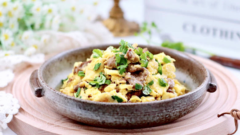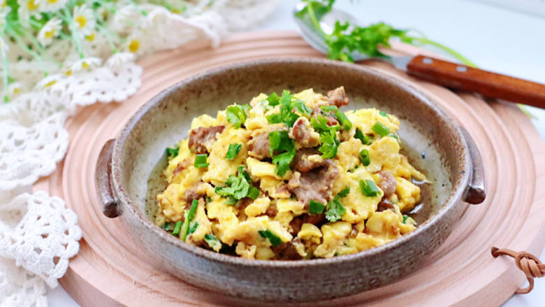 - 这道菜全程不要用大火来烹饪,必须小火低热油来烹饪,这样做出来的牛肉滑蛋才会肉嫩蛋滑好吃哟!