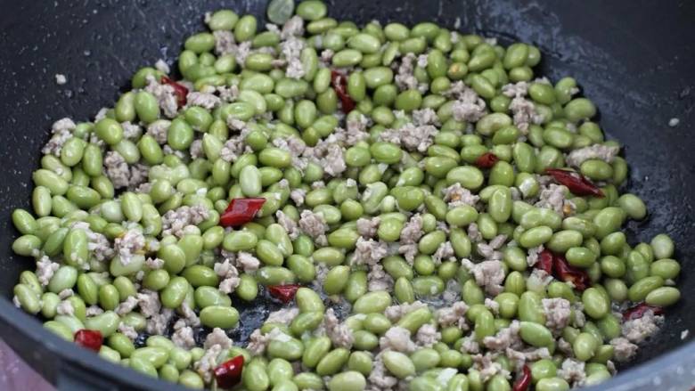 5. 下入毛豆粒改大火翻炒均匀。