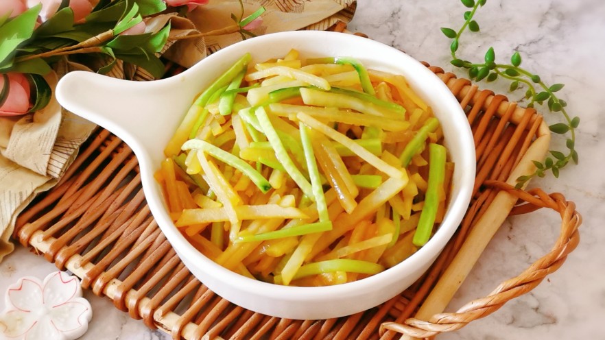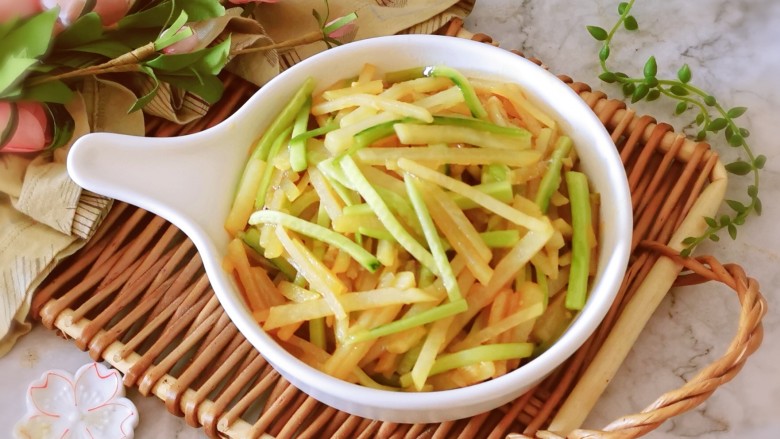 一道美味素炒菜,土豆是我的常备食材,食用多种烹饪方式,饱腹感很强,加入了黄瓜丝,增加了清香味,很喜欢。