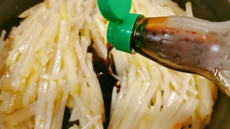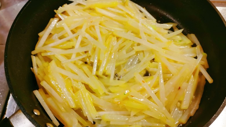 4. 放入土豆丝翻炒成熟,期间加入少量清水以免糊锅。