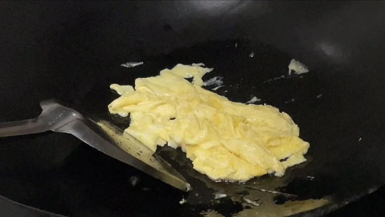 2. 煎至鸡蛋凝固即熟透再盛出备用