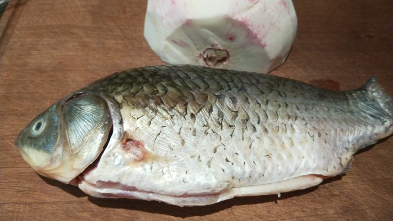 2. 一斤左右的鲫鱼加半个红萝卜灯就够炖一锅汤