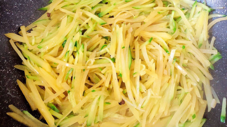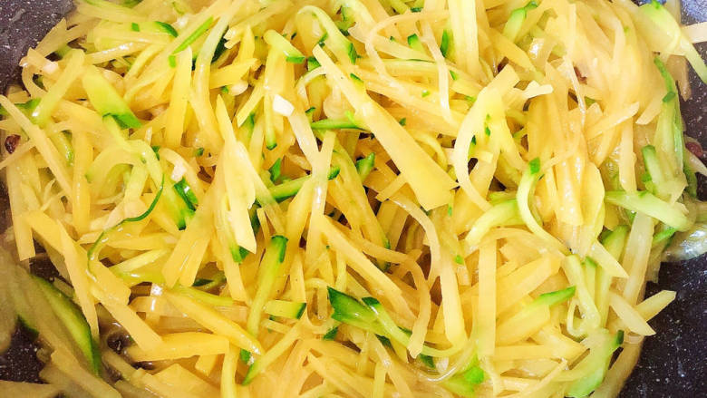 10. 清爽脆嫩的黄瓜炒土豆丝就上桌了!