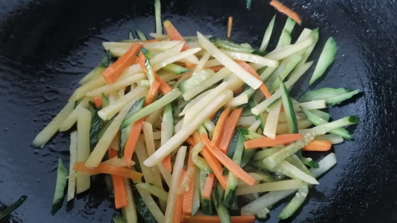 15. 拍上成品图,一道清爽的黄瓜炒土豆丝就完成了。