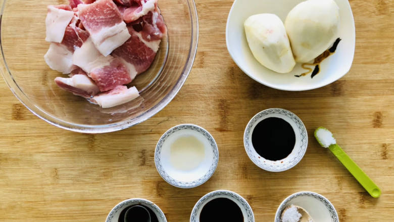 2. 五花肉洗净控干水分切厚片,厚度约3公分左右。