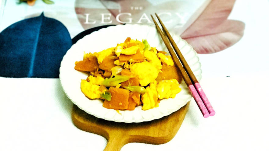 南瓜可补气,降血糖,南瓜中含有大量的膳食纤维和矿物质,可以促进肠蠕动,缓解便秘。加鸡蛋一起炒制,增加蛋白质,营养美味。