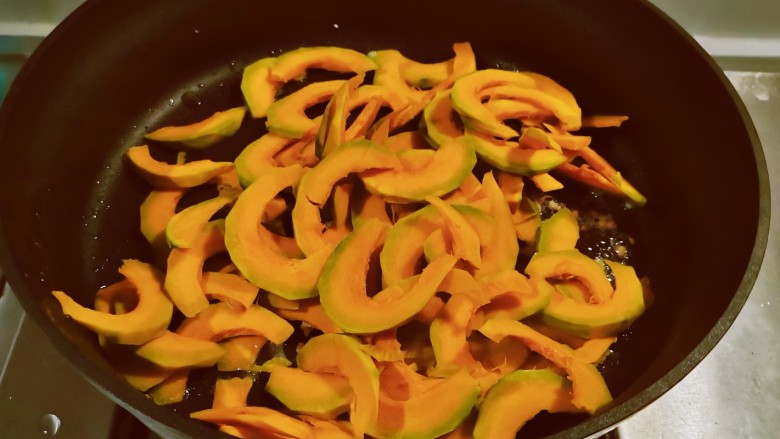 7. 放入南瓜片翻炒断生。