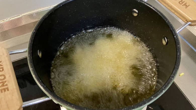 4. 锅中放宽油,油温六成热,下日本豆腐,中小火慢炸
