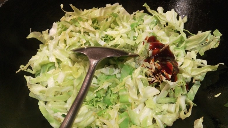 10. 倒入包菜炒均匀。