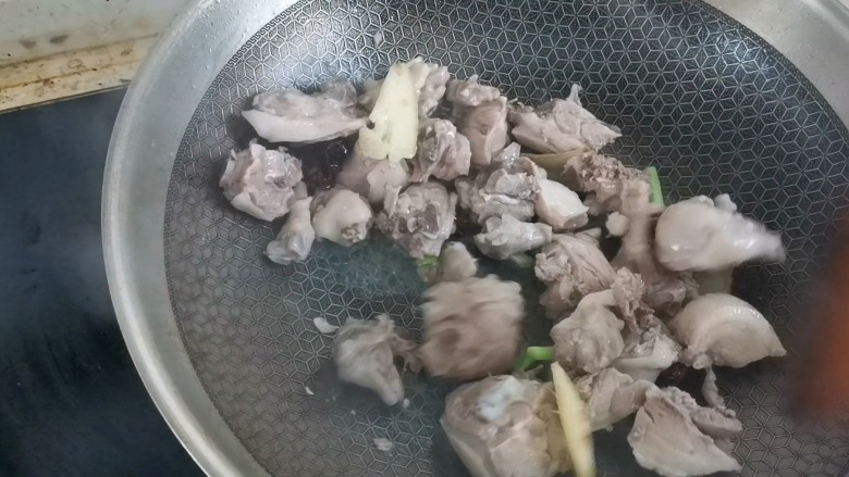 5. 冷水下锅加入一勺料酒煮出血沫