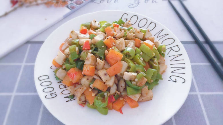 11. 撒上十三香调味,加入少许清水,以免粘锅