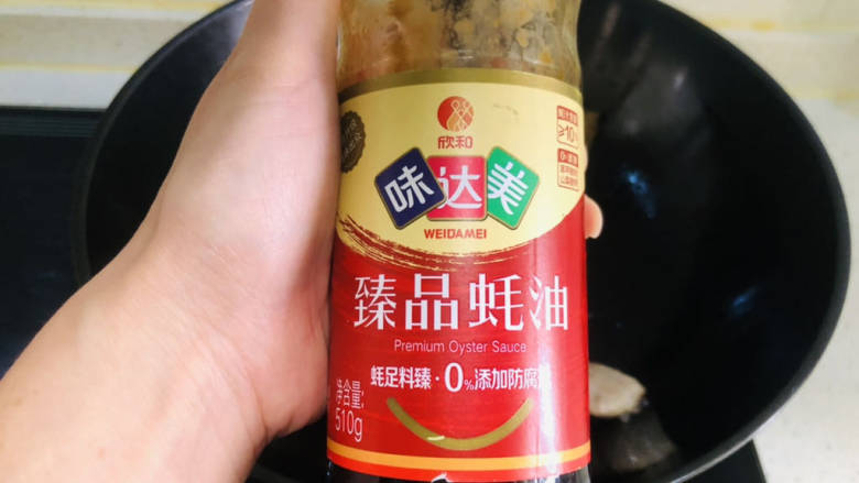 7. 然后倒入1勺冰糖老抽酱油提色增亮。