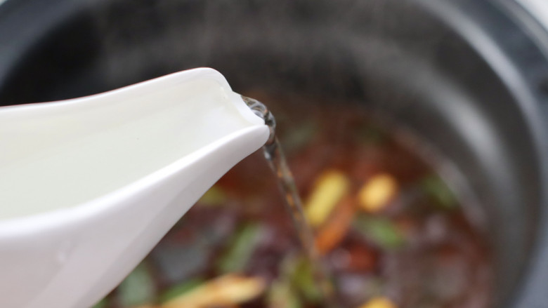5. 锅中倒入适量的清水。