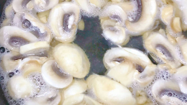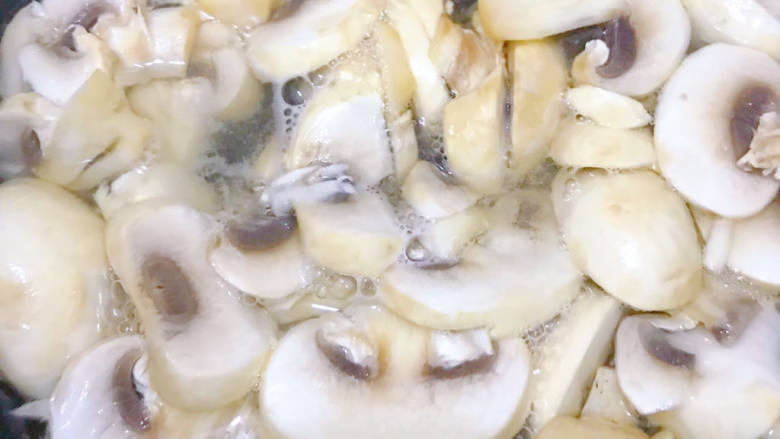 13. 倒入鲜蘑菇绰水