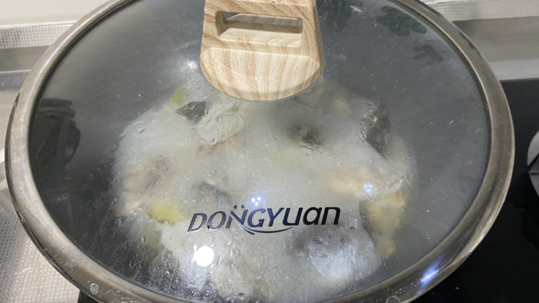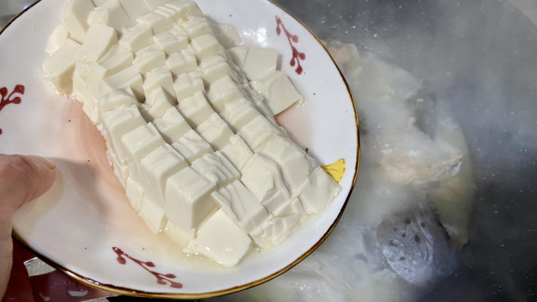 13. 汤汁变得奶白,开盖,加入内脂豆腐煮开