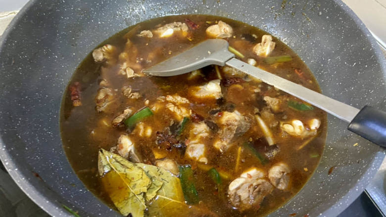8. 下葱白蒜瓣姜片,香叶干辣椒八角桂皮,中火煸香