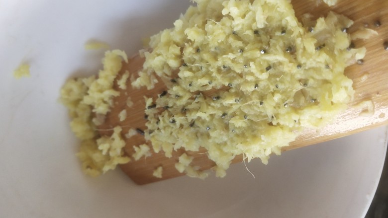 10. 焯好的藕片趁热倒入盛有姜汁的盘里,拌匀
