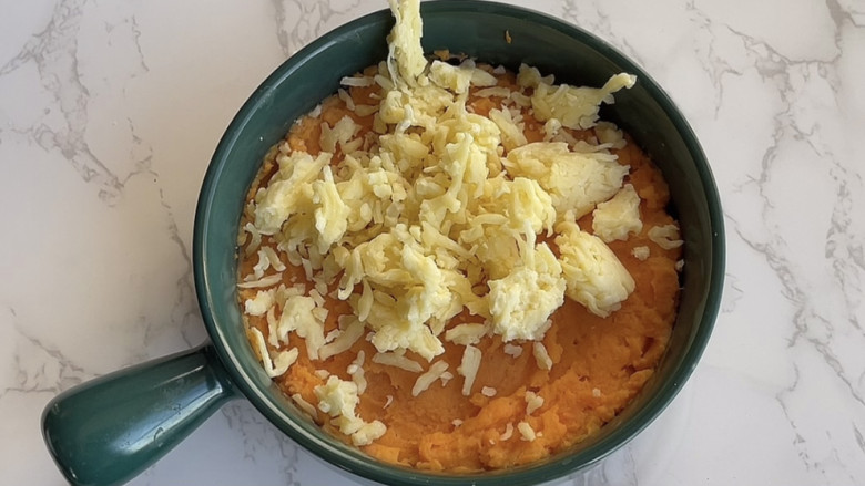 - 没有咸蛋黄可不放,牛奶是为了使红薯泥更加绵软不会因为太干而导致噎口