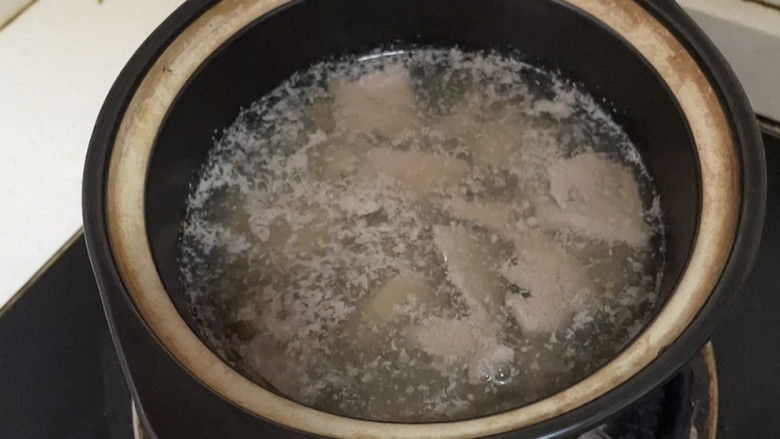 3. 锅中倒入适量清水煮沸后加入猪肝