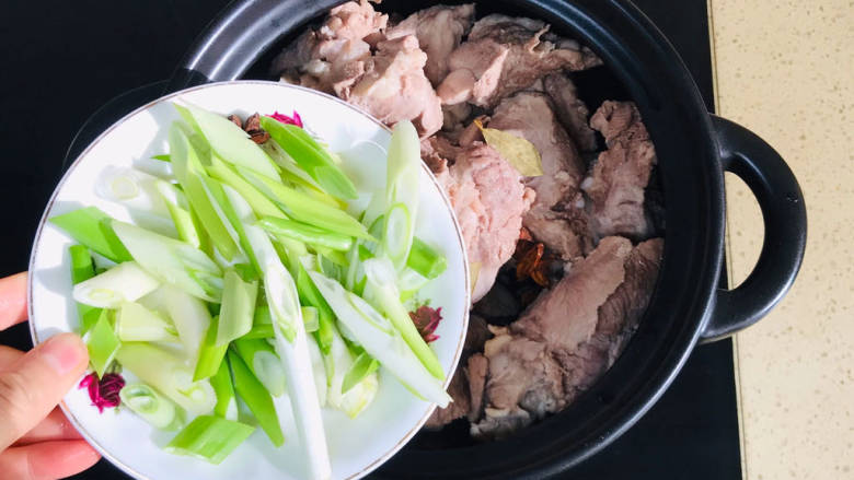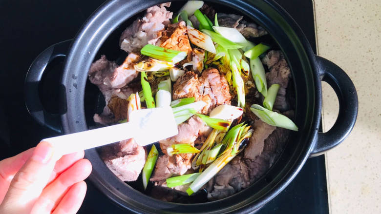 14. 撒上葱花,美味的红烧牛肉煲就做好了