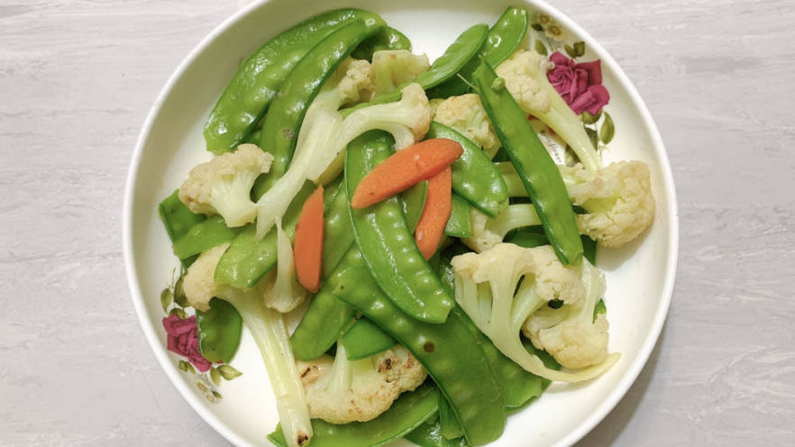 荷兰豆炒花菜,花菜炒荷兰豆就做好了