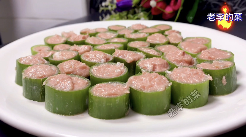 3. 用裱花袋把肉馅儿挤中葱叶里