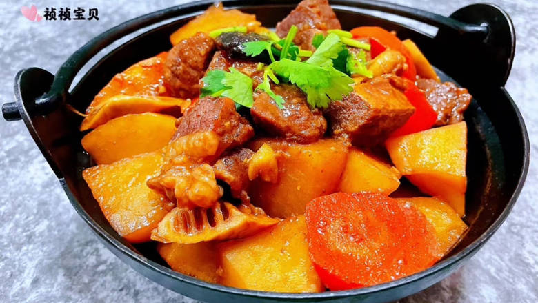 14. 美味可口的土豆胡萝卜红焖牛肉装入容器中就大功告成了