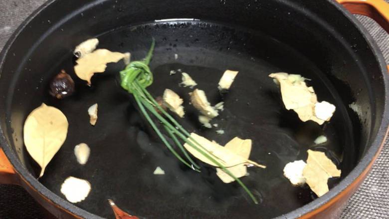 3. 放入装好水的炖锅中,加入卤料,大火烧开