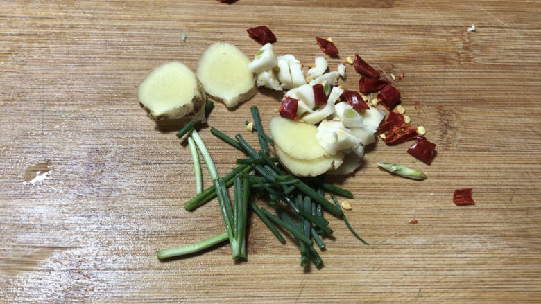 6. 加入花椒粒、辣椒碎和葱姜蒜炒香
