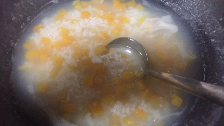 7. 改用小火慢慢煮,期间用勺子搅拌以免沾底