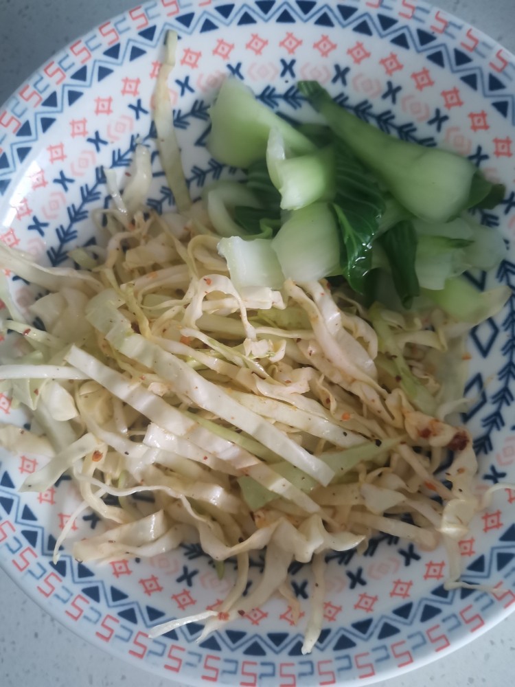4. 甘蓝加盐,味精,辣椒油凉拌一下
