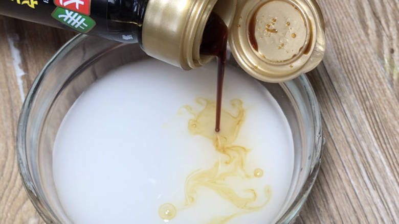 10. 再备一小碗,装入淀粉、清水、生抽,拌匀备用